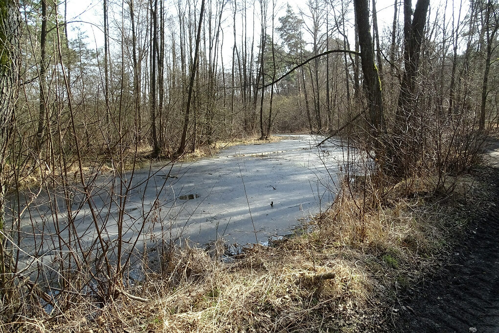 W lasach pojawiły się kwitnące, nieco późno, wawrzynki i przylaszczki. Ptaszki też zaczęły wiosennie ćwiergolić i tylko tafle lodu na śródleśnych bajorkach przypominają, że to jeszcze zima.