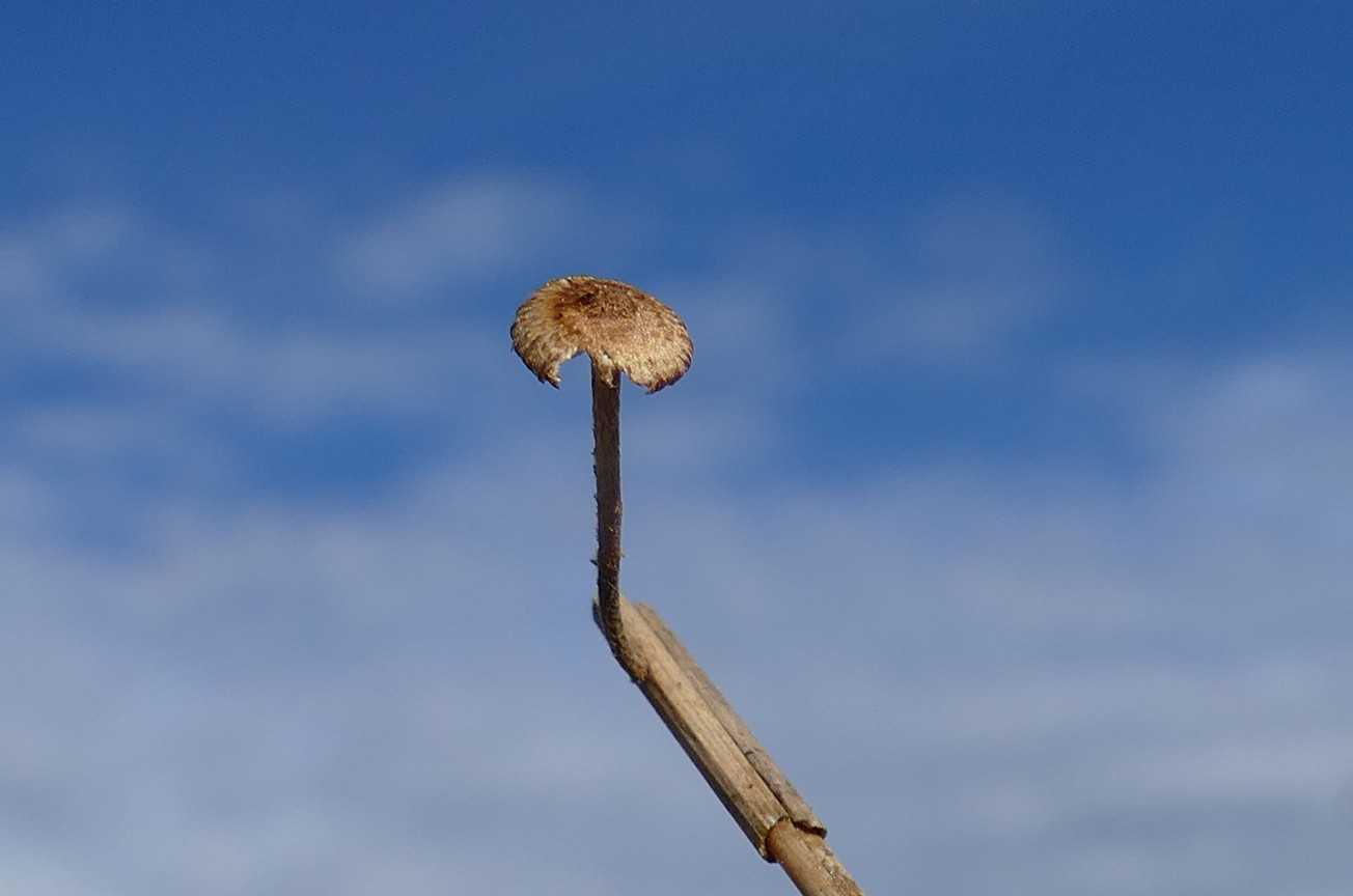 25.10.2025 Miejsce Piastowe, wąwóz między polami uprawnymi. 1 owocnik na suchym źdźble jakiejś rośliny.